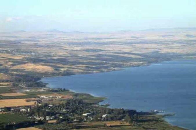The Sea of Galilee is a freshwater lake 695 feet below sea level. Five miles wide. Thirteen miles long. Fed by rain runoff from the mountains of Galilee and the Golan Heights. The Jordan River flows in from Mt. Hermon at the north.